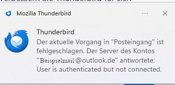In der Email-App Thunderbird erscheint immer wieder eine Fehlermeldung zu einer Outlook Email-Adresse.